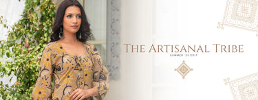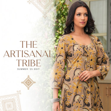 Artisanal Tribe Multi Vanaspati Print A-Line Co-ord Set- Celebrate earthy elegance in this soft cotton co-ord, featuring a tribal-print sleeveless A-line kurta with a boat neckline and matching palazzos—rich in comfort and artisanal flair. Perfect for elevating everyday style with cultural charm.- Rs. 3,895.00