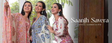 Saanj Savera Abhaa Rose Quartz Hand Blocked Anarkali Set - The Saanj Savera Abhaa Rose Quartz Hand Blocked Anarkali Set is a dreamy blend of grace and tradition. The floral hand block-printed Anarkali flared kurta features a classic round neckline and delicate crochet lace...- Rs. 8,545.00
