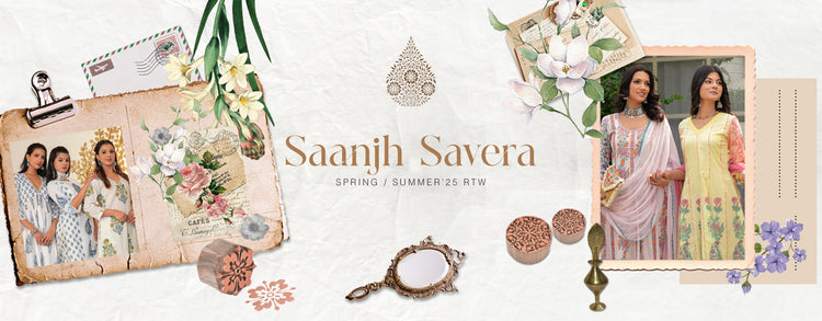 Saanj Savera Biscut Floral Hand Blocked Kurta Salwar Set - The Saanj Savera Biscuit Floral Hand Blocked Kurta Salwar Set exudes effortless charm and heritage elegance. Crafted from breathable cotton, the A-line kurta features all-over Sanganeri floral prints and a flattering V-neckline, delicately adorned...- Rs. 4,000.00